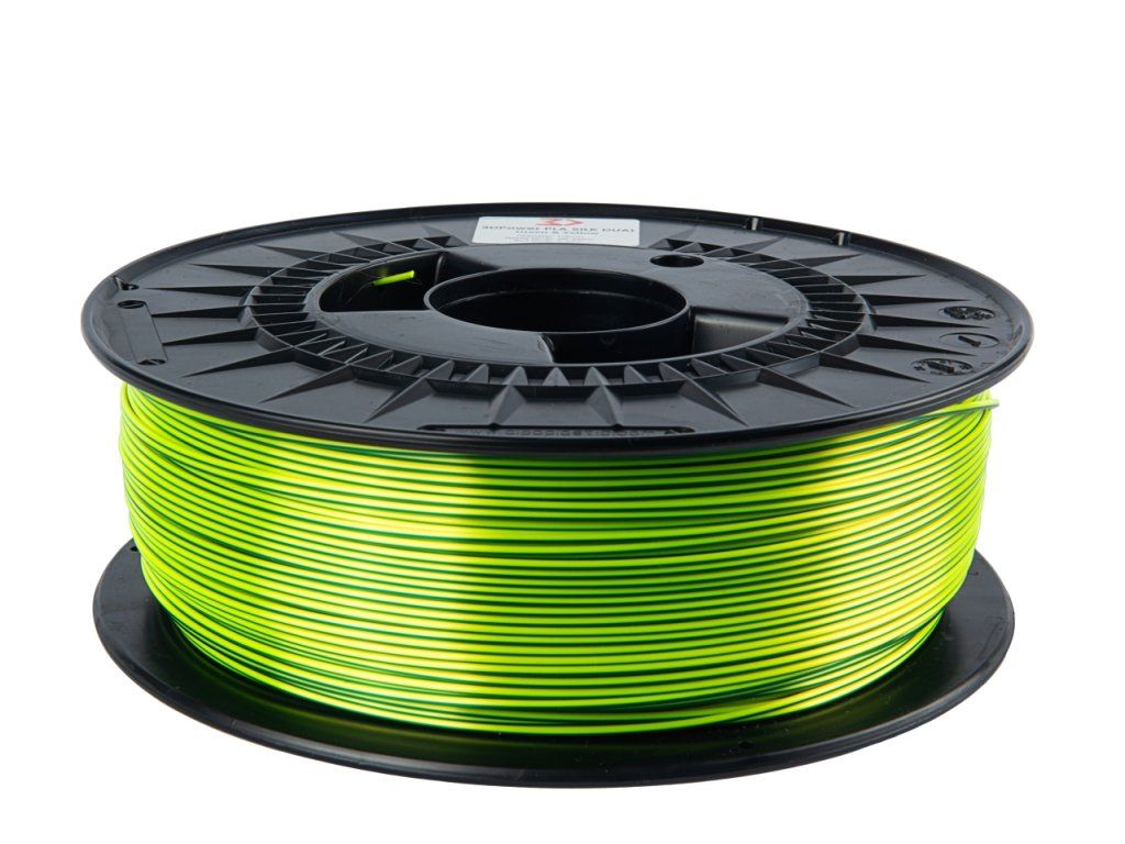 3DPower PLA SILK Dual Color Green & Yellow 1 kg je dekorativní PLA filament pro 3D tisk, který kombinuje dvoubarevný efekt a výrazný hedvábně lesklý povrch. Díky technologii koextruze obsahuje dvě barvy v jednom vlákně, takže se výsledný vzhled modelu mění podle natočení a dopadu světla. Tisk tak získává větší hloubku, atraktivnější vzhled a výraznější charakter bez nutnosti vícebarevného tisku.